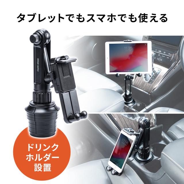 タブレット 車載ホルダー ドリンクホルダー固定 角度調整 車載ホルダー [200-CAR058]