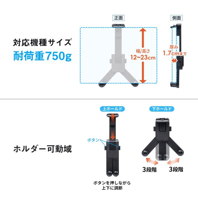 ■ホルダーサイズ:約W50〜150×D52×H150〜247mm■固定マウント:約φ84〜102×H78mm