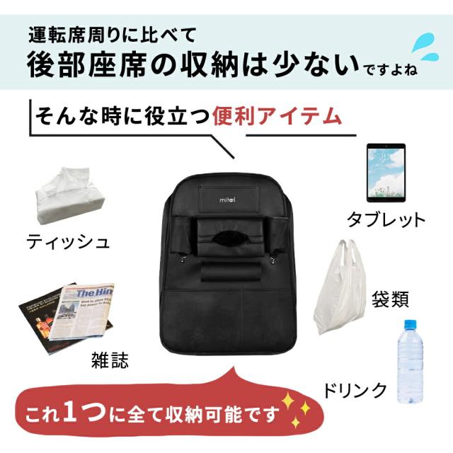 車/シート/椅子/子供/シートベルト/チャイルドシート/ホルダー/ドリンク/ティッシュホルダー/ティッシュ/ドリンクホルダー/後部座席/スマホ/タブレット/傘/雑誌/飲み物/汚れ対策/ブラック/ワインレッド/ベージュ/ドライブ/お出かけ/遠出/レザー/カー用品/車載収納/車用/車内/おしゃれ/車内/バックシートポケット/シンプル/収納/シートカバー/後ろ/後付け/カバー/子供/傷対策/内装/大容量/後部座席用ポケット/後部座席につける/mitas