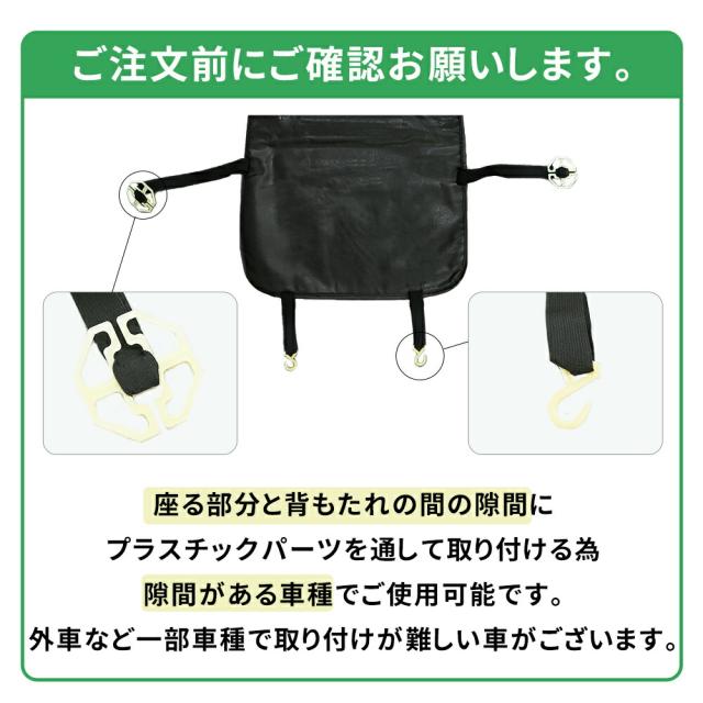 ※外車など一部車種で取り付けが難しい車がございます。座る部分と背もたれの間に隙間があるかご確認後、ご購入をお願いします。