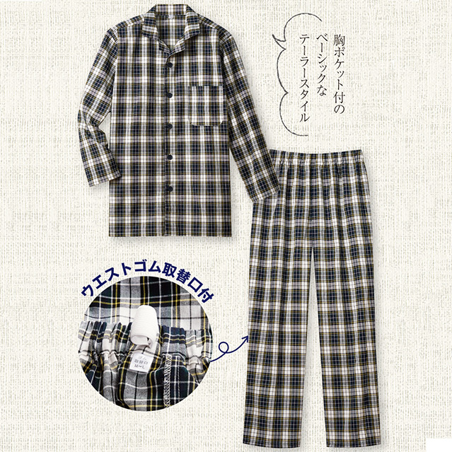 綿100%先染めメンズパジャマ ネイビー系 セルヴァン