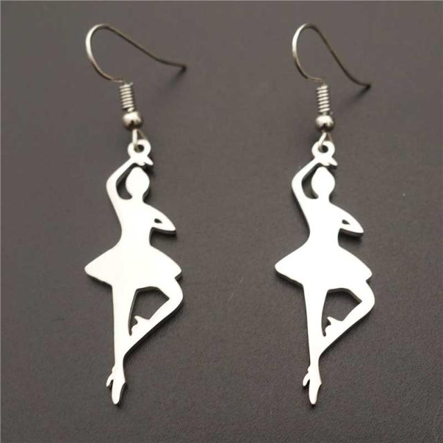 ステンレス製のフックピアスパーツにステンレスでできたバレリーナが揺れる面白いステンレスピアス。