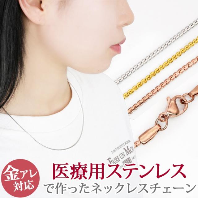 鎖のような一面を見せる細身のスネークチェーン。3つのカラー展開でお洋服にも合わせやすいため、様々なシーンでお使いいただけます。金属アレルギーの方にも安心なサージカルステンレスを使用。使い勝手の良さとデザインが魅力的なステンレスネックレスを是非お試しください。シルバーやホワイトゴールド、プラチナで金属アレルギーが出てしまう方にもオススメです。