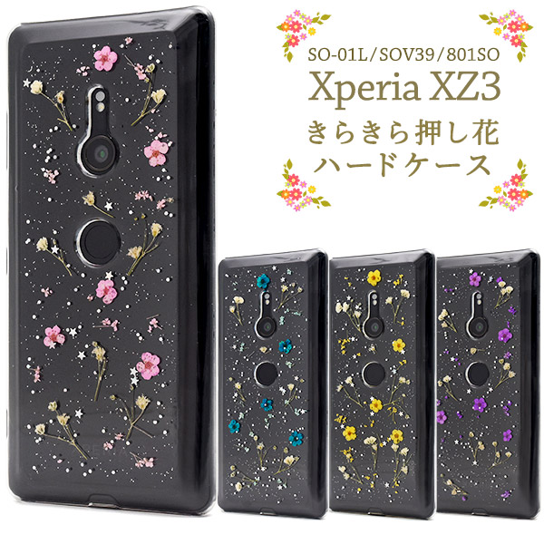 スマホケース アウトレット Xperia XZ3 SO-01L SOV39 801SO用 きらきら 押し花 ハードケース ハーバリウム風 おしゃれ 可愛い 携帯ケース 携帯カバー フェミニン 春 花 小花 かわいい スマホカバー ハーバーリウム風 花模様 花柄 お洒落 保護カバー シンプル 上品