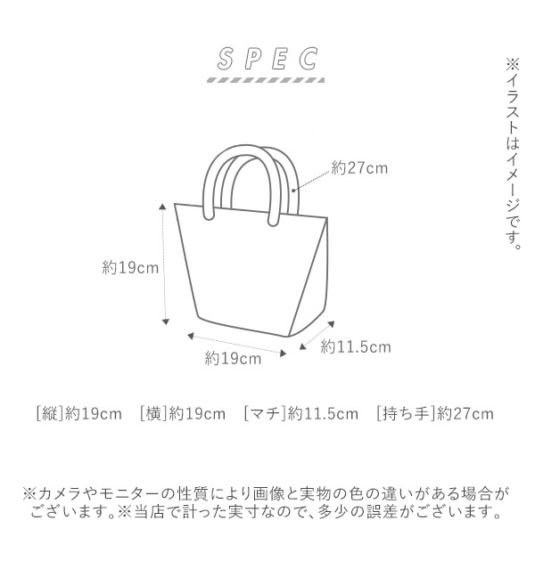 | サイズ | [縦]約20cm/[上部横幅]約29cm/[底部横幅]約20cm [マチ]約10cm/[持ち手]約27cm ※サイズは当店計測の実寸サイズです。実際の商品ならびにメーカー表記サイズとは多少の誤差が生じる場合がございます。あらかじめご了承ください。 |