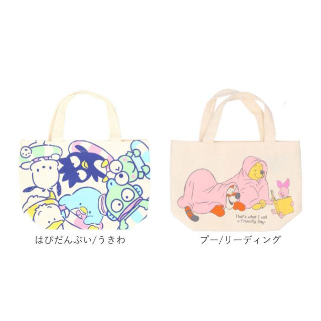 | 商品説明 | シンプルなキャンバス素材を使用した、コンパクトなトートバッグです。小さめサイズですが、マチが10cmとしっかりとあり、お弁当箱や水筒、500mlのペットボトルも入るので、ランチバッグに最適☆内側にはオープンポケットがあり、コインケースやリップクリームを入れて、ちょっとした外出や愛犬とのお散歩などにも便利です。 お馴染みの人気キャラクターが勢揃い♪豊富なデザインからお好きな柄をお選びいただけます。 |