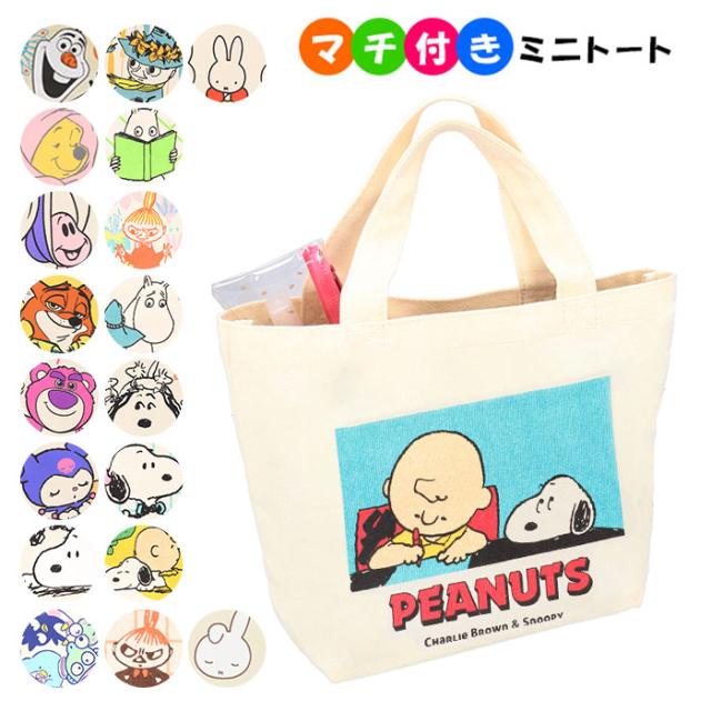 トートバッグ 小さめ 通販 ミニトートバッグ おしゃれ ミニトート ランチバッグ スヌーピー ディズニー ランチトート ミニ ランチ お弁当 キャラクター かわいい マチ付き コットンバッグ 綿 コットン 通勤 通学 プリント サブバッグ ミニバッグ 手提げかばん
