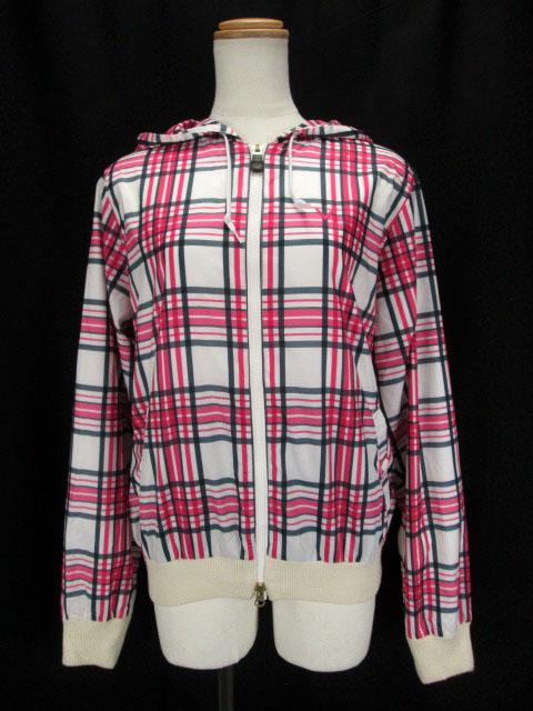 【中古】キャロウェイ CALLAWAY ジャケット ブルゾン チェック ナイロン ニット L 白 ピンク レディース