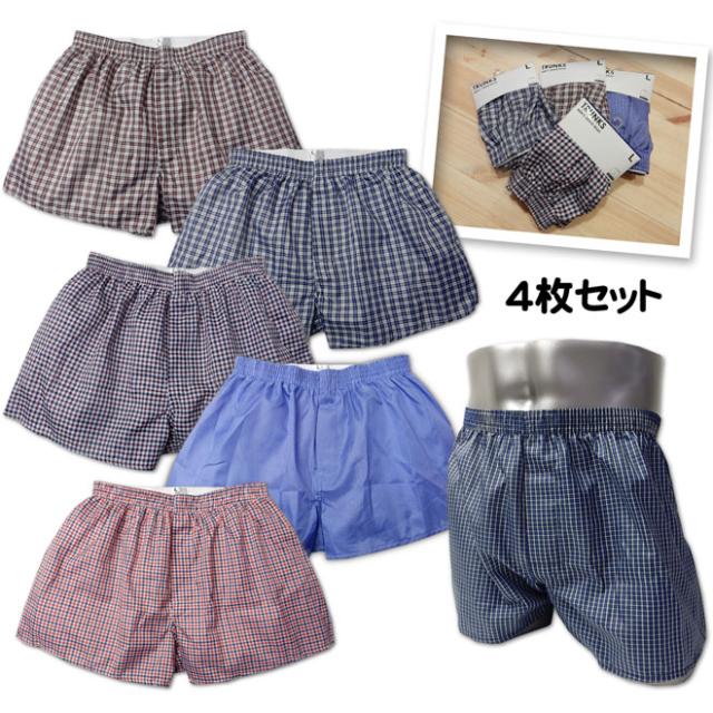 【送料無料】4枚セットメンズ トランクス 当店おまかせ 格子柄 肌着 下着 紳士【メール便対応】