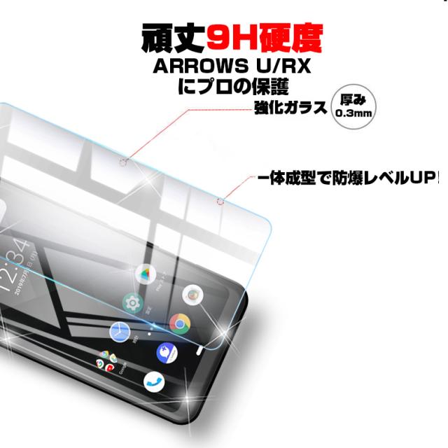 【2枚セット】Arrows U/RX 強化ガラス保護フィルム 富士通 保護シール 液晶保護ガラスシート 画面保護フィルム 厚さ0.3mm
