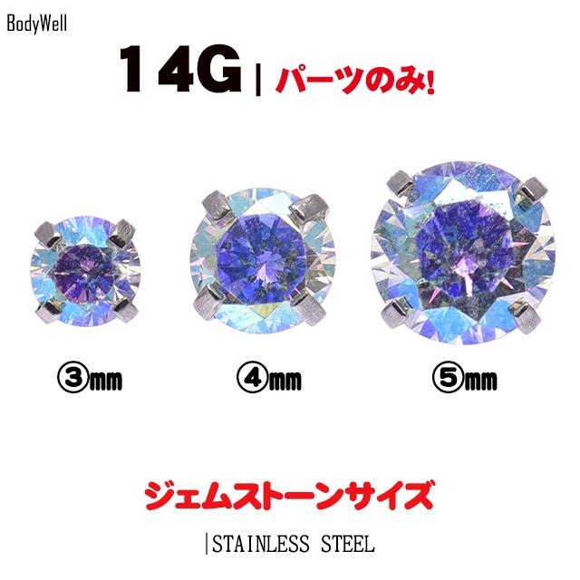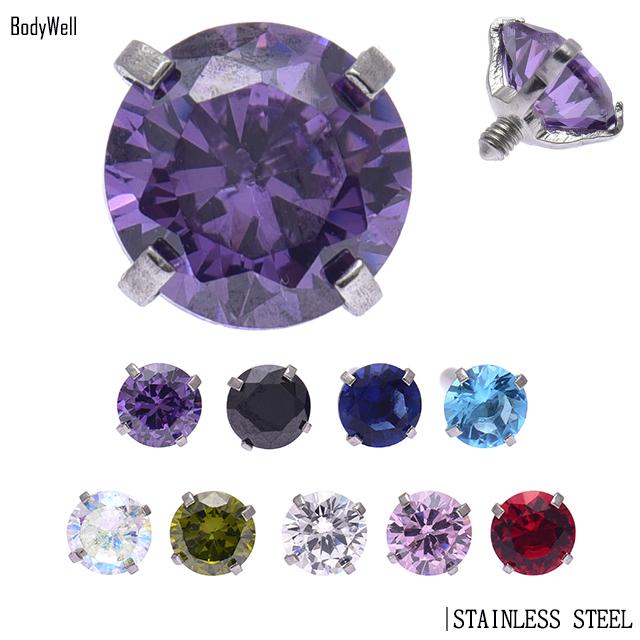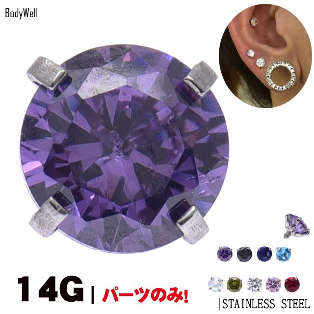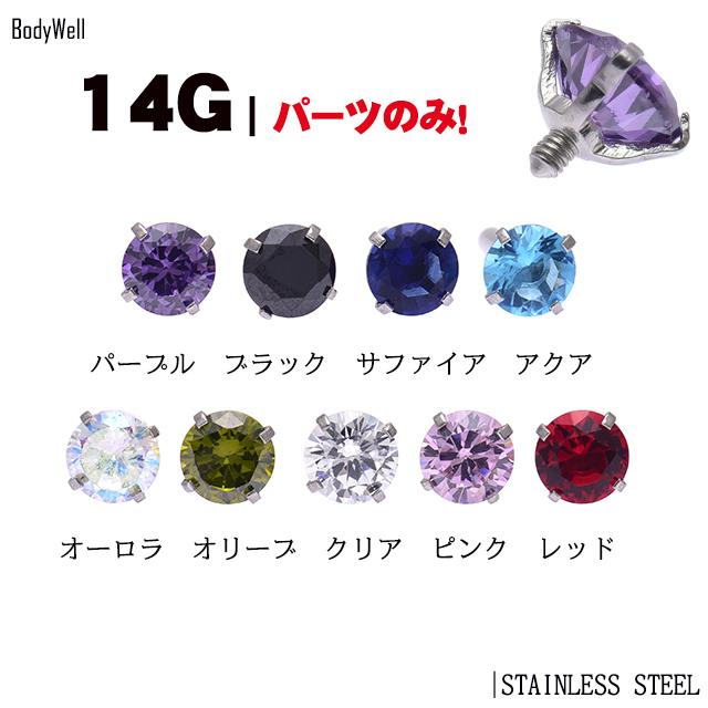 ボディピアス 14G用 ※パーツのみ※ 全9色 立爪 ジルコニア ストーン インターナルネジ専用 キャッチ ピアスパーツ