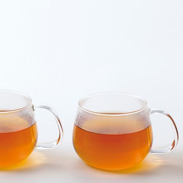 ころんとしたフォルムが可愛らしい シンプルなデザインの耐熱ガラス製ティーカップ