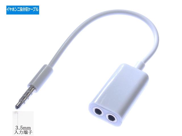イヤホン二股分配ケーブル 3.5mmイヤホンジャック対応 ダブルイヤホン イヤホンジャック ケーブル 分配コード