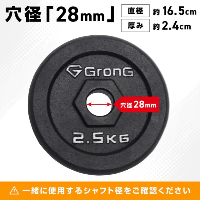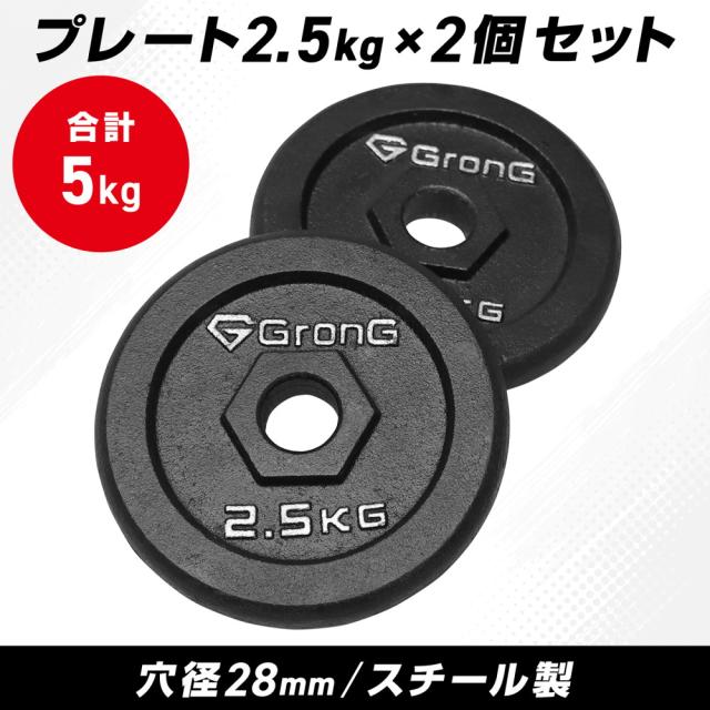 グロング GronG アイアンダンベル プレート 追加 セット バーベル 2.5kg×2 計5kg シャフト径28mm 筋トレ 腕 ホームジム