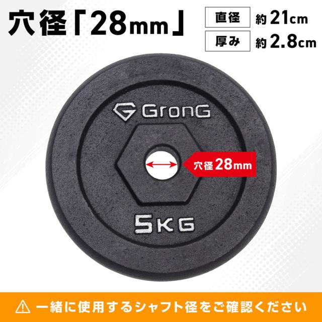 グロング GronG アイアンダンベル プレート 追加 セット バーベル 5kg×2 計10kg シャフト径28mm 筋トレ 腕 ホームジム