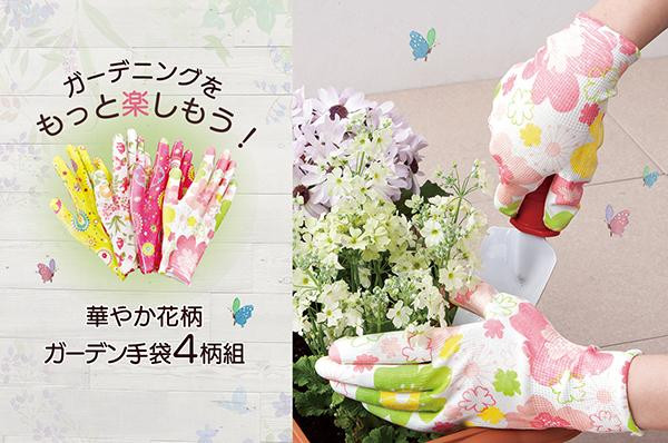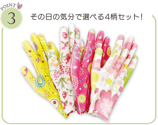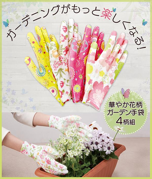 華やか花柄ガーデン手袋(4柄組) 【北海道・沖縄・離島配送不可】