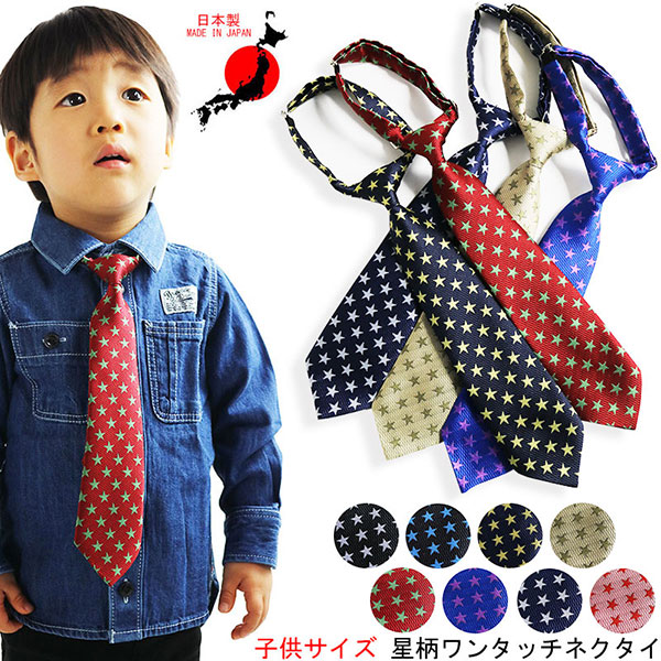 日本製 星柄 キッズ ネクタイ 子供 ワンタッチ 子ども用 入園式 卒園式 入学式 卒業式 結婚式 ステージ衣装 発表会
