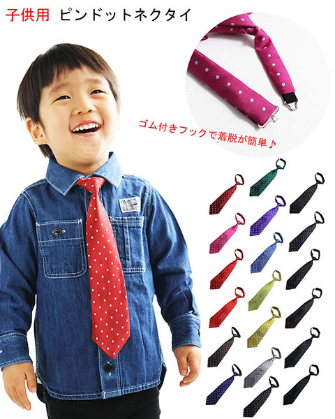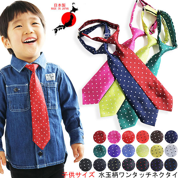 水玉柄 キッズ ネクタイ 日本製 ワンタッチ 子ども用 ピンドット 卒園式 入学式 卒業式 発表会 ステージ衣装