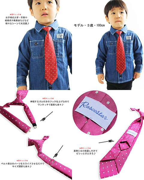 大人用と同じ生地、素材を使用した安心の日本製ネクタイ