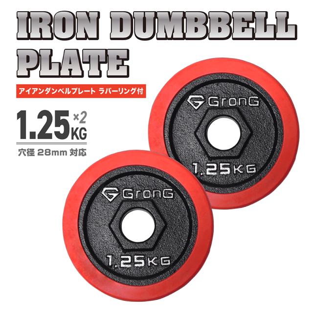 グロング GronG アイアンダンベル プレート 追加 セット バーベル 1.25kg×2 計2.5kg ラバー付き シャフト径28mm 筋トレ 腕 ホームジム