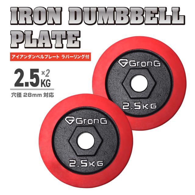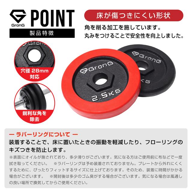 グロング GronG アイアンダンベル プレート 追加 セット バーベル 2.5kg×2 計5kg ラバー付き シャフト径28mm 筋トレ 腕 ホームジム