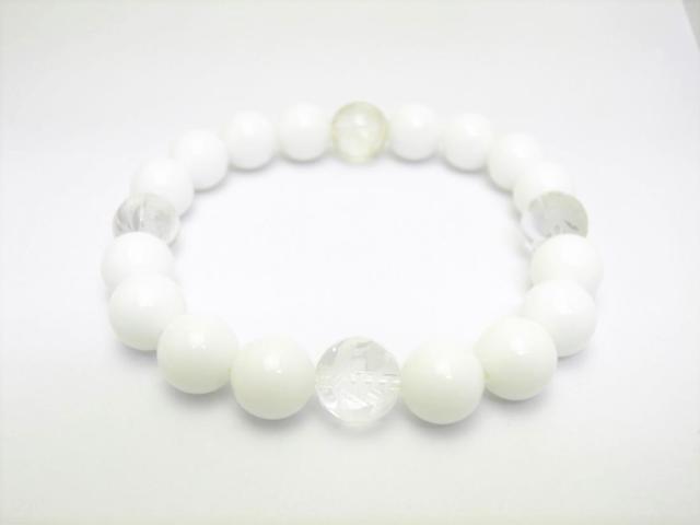| 素 材:ホワイトオニキス・水晶 サイズ:水晶(四神獣):12mm、ホワイトオニキス:12mm、内径:20cm |