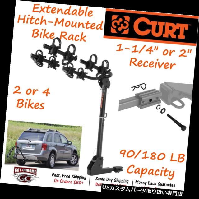 ヒッチメンバー 18030 Curt 2-4 1.25 / 2 "レシーバー用チルト付き拡張可能ヒッチマウント式バイクラック