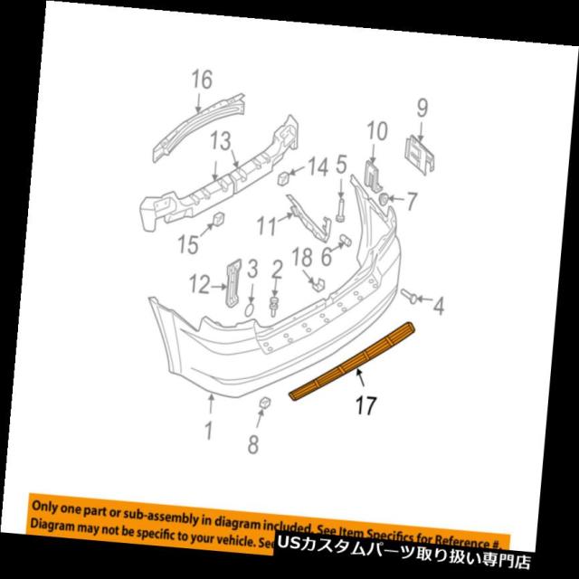 | Condition: New Genuine OEM: Yes Category 3: Bumper & Components Warranty: 1 Year Fitment Footnotes: Diag Ref #17;2003-06; Quantity: 1 Item Name: Step Pad SKU: KI:86645-3E000 Part Ref# on Diagram: ONLY PART REFERENCE #17 ON THE DIAGRAM IS INCLUDED Brand: Kia Quantity Needed: 1 Manufacturer Part Number: 866453E000 Category 1: Body Hardware Category 2: Rear Bumper Placement on Vehicle: Rear Fitment Type: Direct Replacement UPC: Does not apply | |
