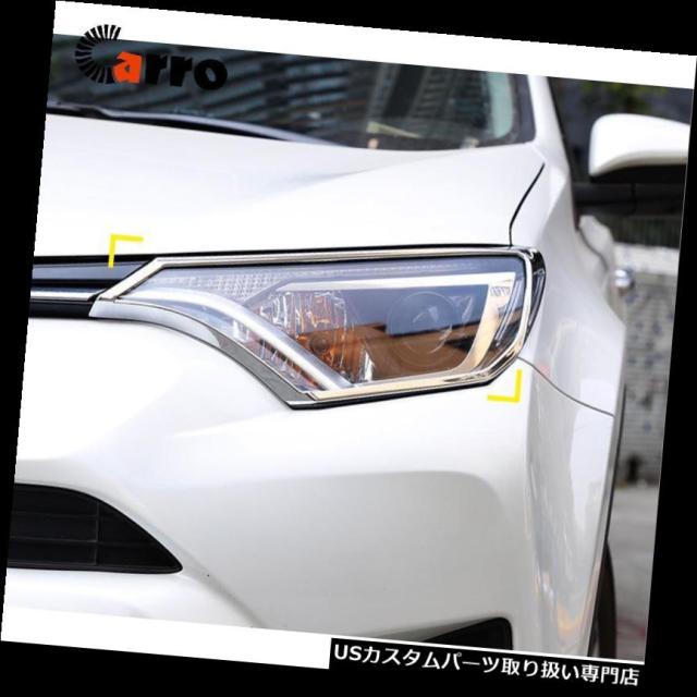 ヘッドライトカバー トヨタRAV4 16-17用エクステリアフロントヘッドライトランプカバートリムABSクローム2本 Ext