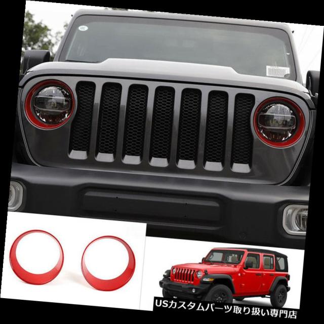 ヘッドライトカバー ジープラングラーJL 2018 2019のための赤いフロントヘッドライトランプカバートリムABS 2本