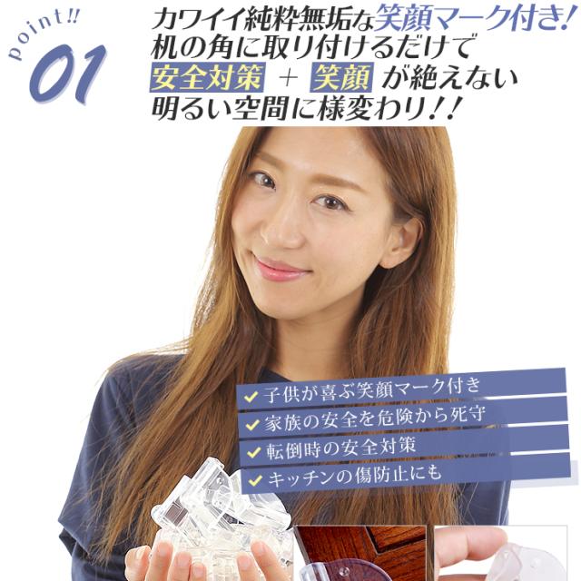 コーナーカバー コーナーガード コーナークッション けが防止 8個セット 樹脂製 透明 赤ちゃん クッション 家具 幕板 笠木 壁 机 角 本棚 怪我 保護 野外 屋内 透明両面テープ 付(笑顔マーク型)
