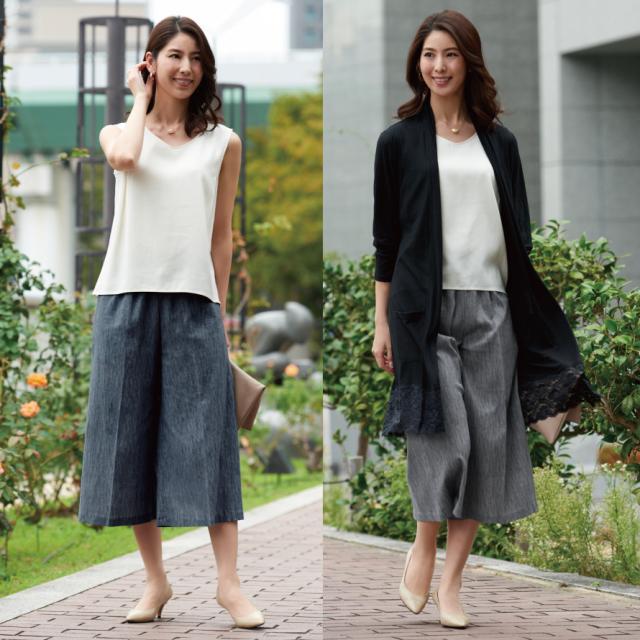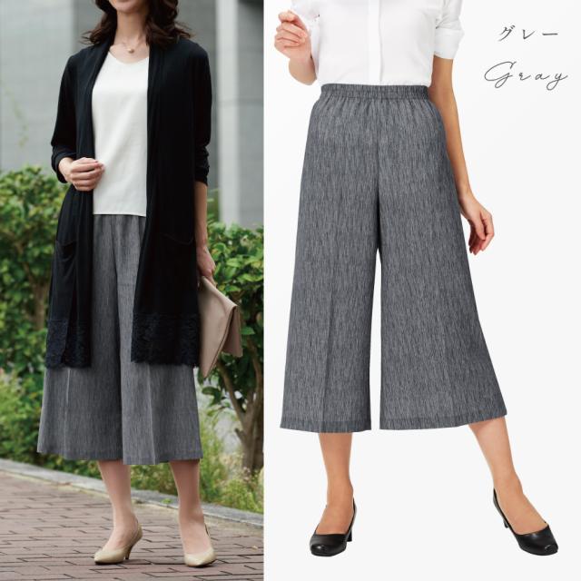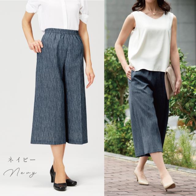 キュロット,ウエストゴム,春夏,涼感,涼しい,日本製,ボトムス,レディース,7部丈,大きいサイズ,おしゃれ,高島ちぢみ,おしゃれ,おしゃれ,お洒落,30代,40代,50代,60代,ミセス,お出かけ,ファッション,ネイビー,グレー,紺,灰色,M,L,LL,3L,大きいサイズ,大きめ,メール便対応,お出かけ,ショッピング,買い物,旅行