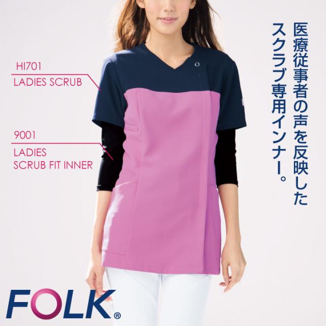 9001 FOLK アンダーウェア インナー 長袖シャツ 七分袖 吸汗速乾 ストレッチ レディース 医療 美容 介護