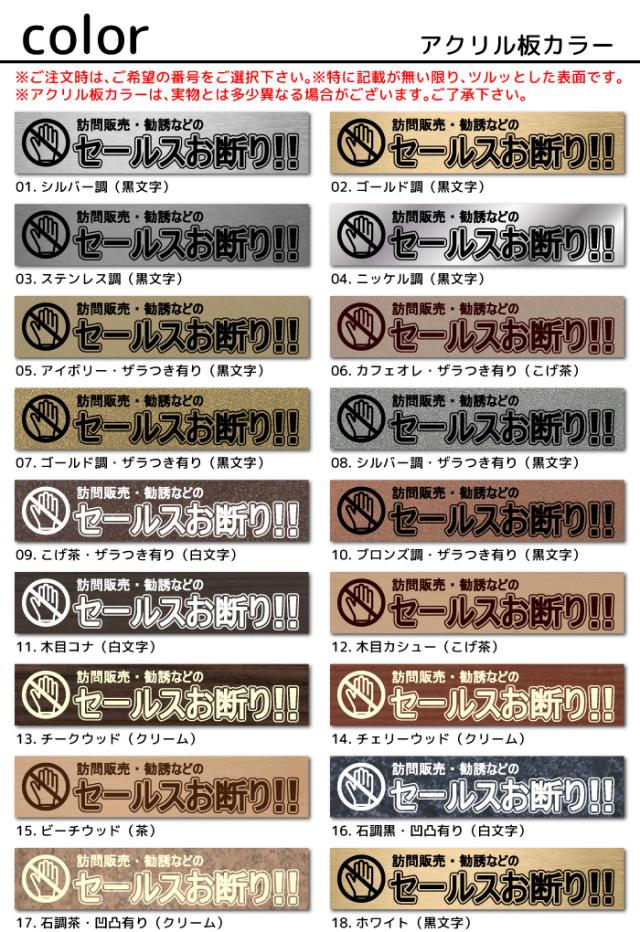 関連ワード: シンプル セールスお断り 防犯カメラ 駐車禁止 宅配ボックス チラシお断り 立ち入り禁止 猛犬注意 土足禁止 訪問販売禁止 室名札 ルームプレート
