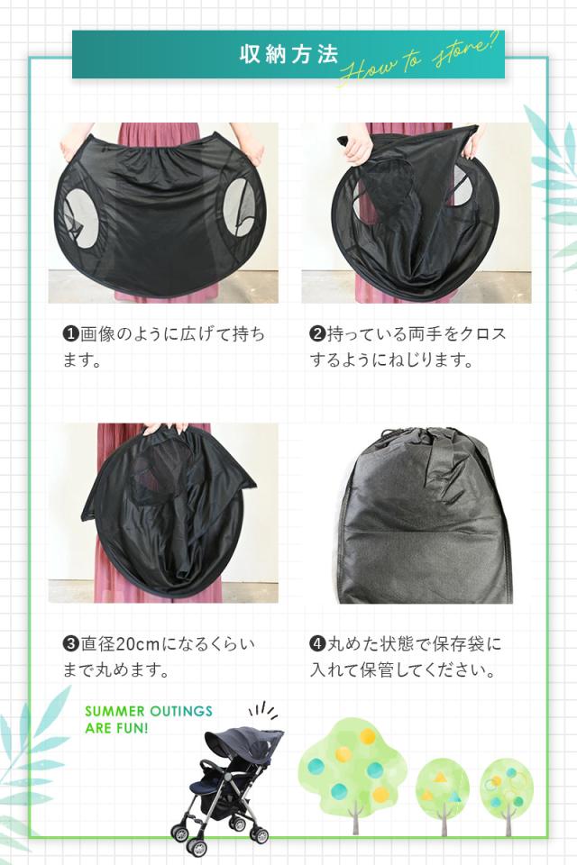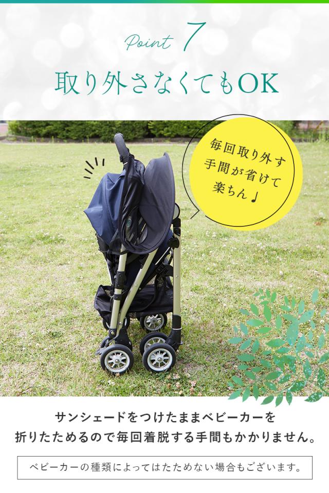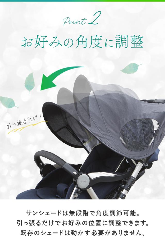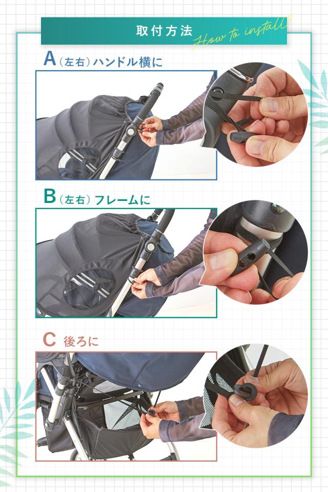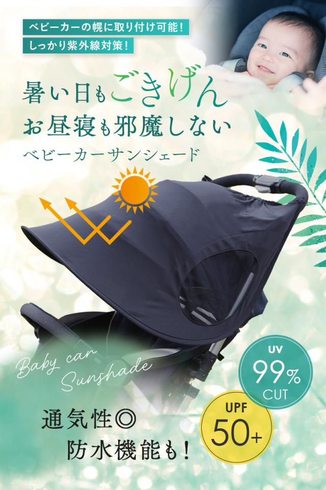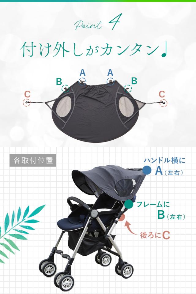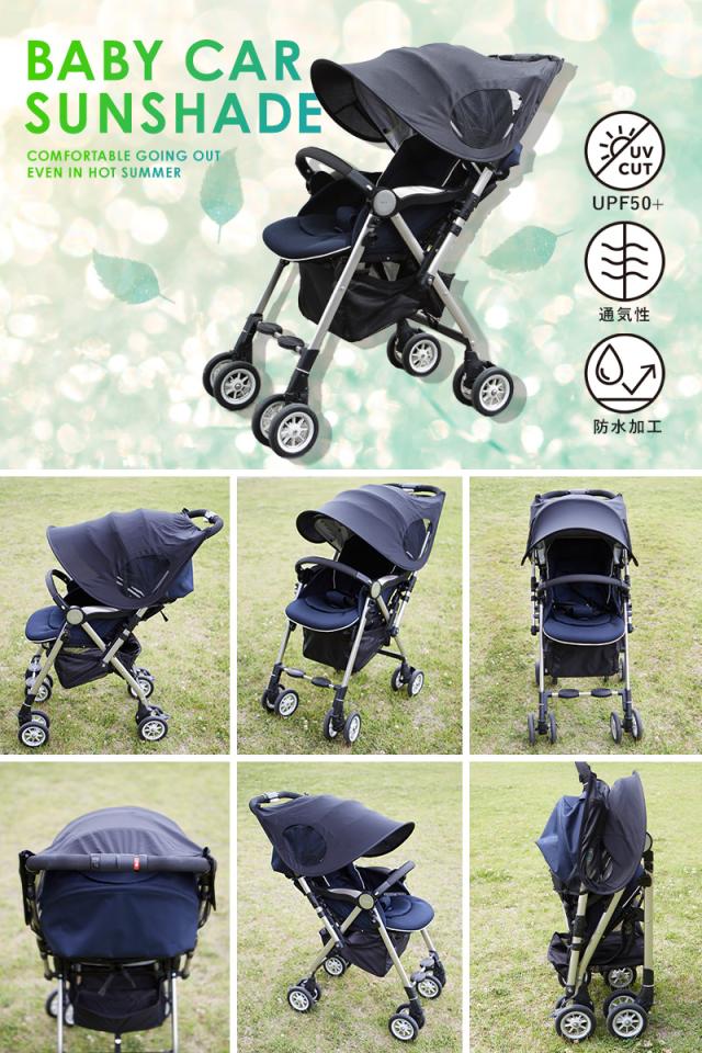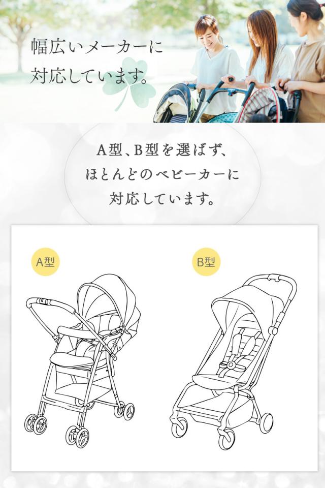 A型、B型を選ばず、ほとんどのベビーカーに対応できる便利なベビーカーサンシェード。