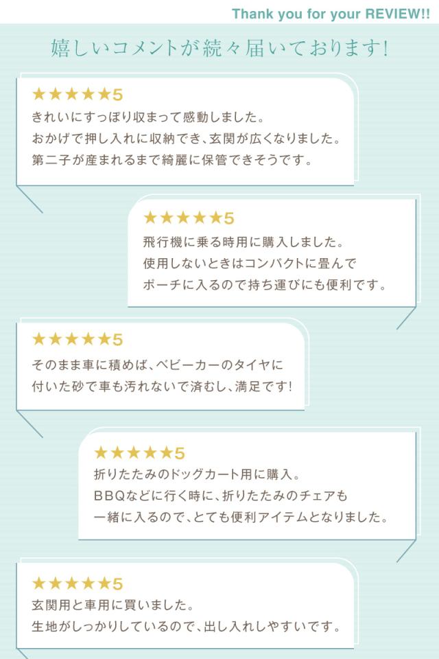 - シューズクローゼットの中にベビーカー置いてましたが、室内にしまいたかったので袋を探していました。サイズ測ってみたら後輪タイヤの部分が少しオーバーだったのですが、まぁ良いやと思い注文しました。早速使ってみるとスッポリ収納出来ました!感激です!使ってるベビーカーはマウンテンバギーSwiftです^^