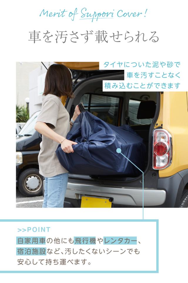 被せるだけでなく、タイヤまで収納できるので汚れもしっかりカバー。