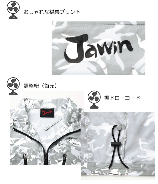 襟裏には、かっこいい「Jawin」の文字がプリント。