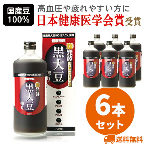 \ポイント消化!/ 【6本セット】麹発酵 黒大豆搾り 720ml 毎日の元気を応援 ポリフェノール アミノ酸 クエン酸 ミネラルたっぷり眼精疲労・高血糖・ひどい疲れに くろだいずしぼり 健康飲料水 無添加 国産黒豆100% 米麹 手造り