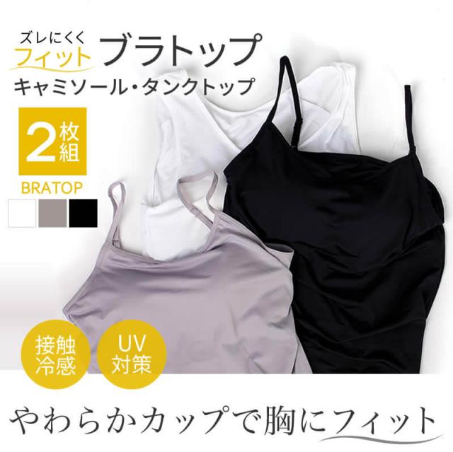 ブラトップ キャミソール 2枚組 タンクトップ カップ付き インナー 接触冷感 UV対策 メール便で送料無料 oth-la-in-1515-2fix 美バスト ワイヤーなし 下着 肌着 肩紐調節可能 アジャスター付き キャミ ブラキャミ ブラタンク