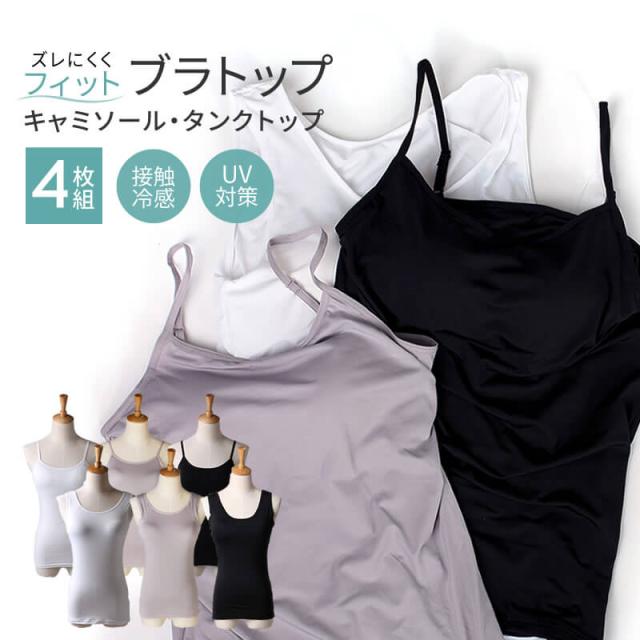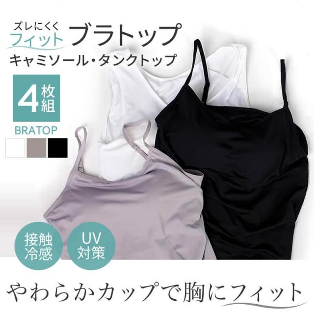 ブラトップ キャミソール 4枚組 タンクトップ カップ付き インナー 接触冷感 UV対策 宅配便のみ oth-la-in-1515-4fix 美バスト ワイヤーなし 下着 肌着 肩紐調節可能 アジャスター付き キャミ ブラキャミ ブラタンク