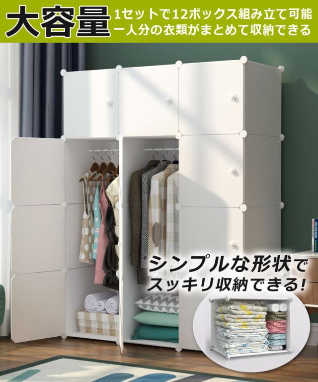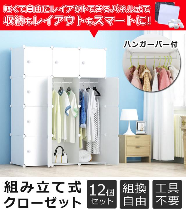 クローゼット 組立式 12個組 軽量 おしゃれ 組み立て式 収納ボックス デザイン自由自在 組立式クローゼット ハンガーポール付き 棚 新生活 カラーボックス SunRuck サンルック