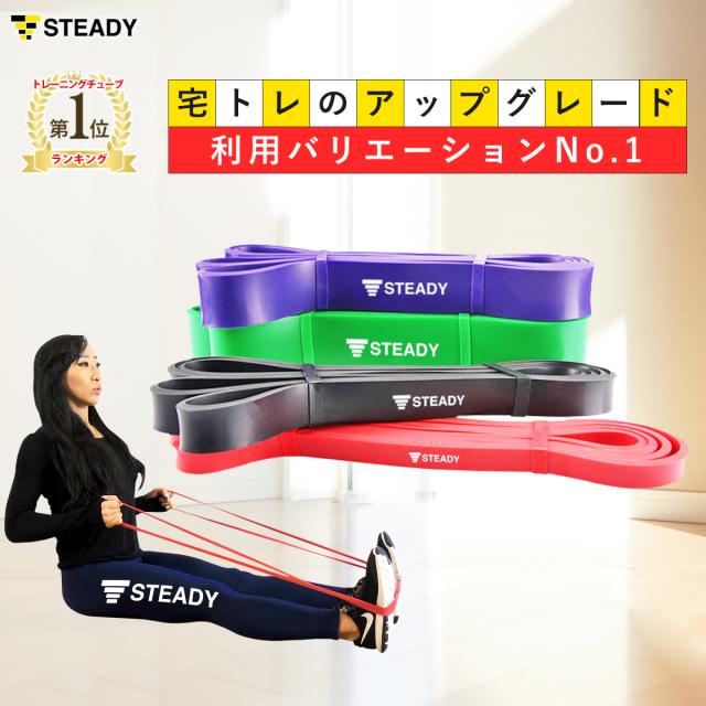 【1位獲得】トレーニングチューブ 強度別4本セット 日本語トレーニング動画付 [メーカー1年保証] STEADY(ステディ) ST112 ゴムバンド エクササイズバンド フィットネスチューブ レジスタンスバンド ループバンド ストレッチ