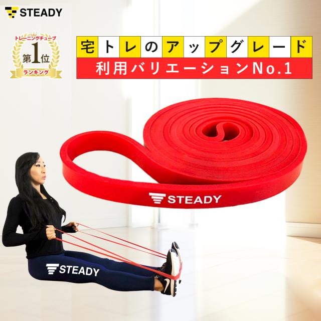 【1位獲得】トレーニングチューブ 赤(強度:ソフト) 日本語トレーニング動画付 [メーカー1年保証] STEADY(ステディ) ST108 ゴムバンド エクササイズバンド フィットネスチューブ レジスタンスバンド ループバンド ストレッチ