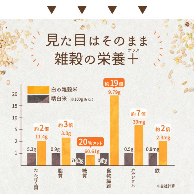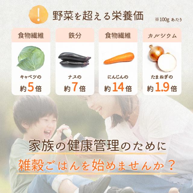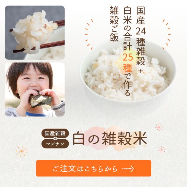 裸麦α、裸押し麦、もち玄米、押しもち麦、黄大豆(割り)、青大豆(割り)、うるち玄米、国産もち米、小豆(割り)、発芽玄米、緑米、発芽もち玄米、とうもろこし(割り)、インゲン豆(割り)、精白ひえ、精白高きび、精白うるち粟、精白もちきび、うずら豆(割り)、精白うるちきび、胚芽押し麦、米粒状こんにゃく加工食品、アマランサス、精白もち粟、精白はと麦/加工デンプン、グルコン酸Ca、増粘剤(アルギン酸Na)、調味料(有機酸)