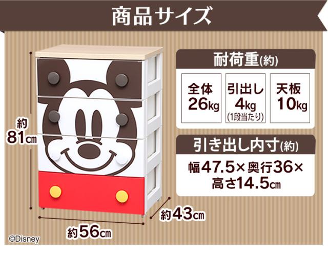 タンス キッズチェスト キャラクターチェスト NHG-W554 ディズニー ミッキー プーさん ドナルド ディズニー チェスト 子供服 子ども 収納 収納ケース 収納ボックス お片づけ 子供服 引き出し クローゼット