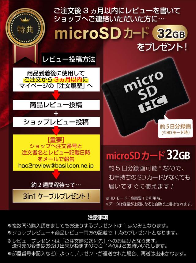 ※本製品にはmicroSD(128GBまで※32GB以上推奨/Class4以上)が必要です。別途市販されているものをご用意ください。