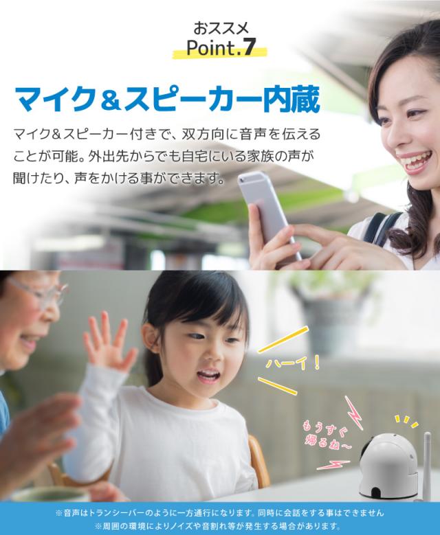 - 留守番している子どもの様子を確認でき、購入して良かったです! マイクの声が少しハッキリしないけど、聞き取ることは出来ているようなので、問題なしです。