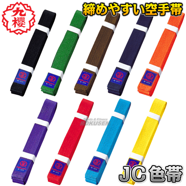 九櫻・九桜 空手帯 色帯 JC S号/1号/2号/3号/4号/5号/6号 黒帯/茶帯/紫帯/緑帯/オレンジ帯/黄帯/紺帯/空色帯 空手着用色