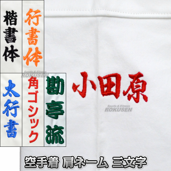 空手 空手着ネーム刺繍 腕ネーム(肩ネーム) 3文字 NU3 空手衣 空手道着 肩刺繍